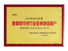 秦皇島市銀行業金牌誠信客戶